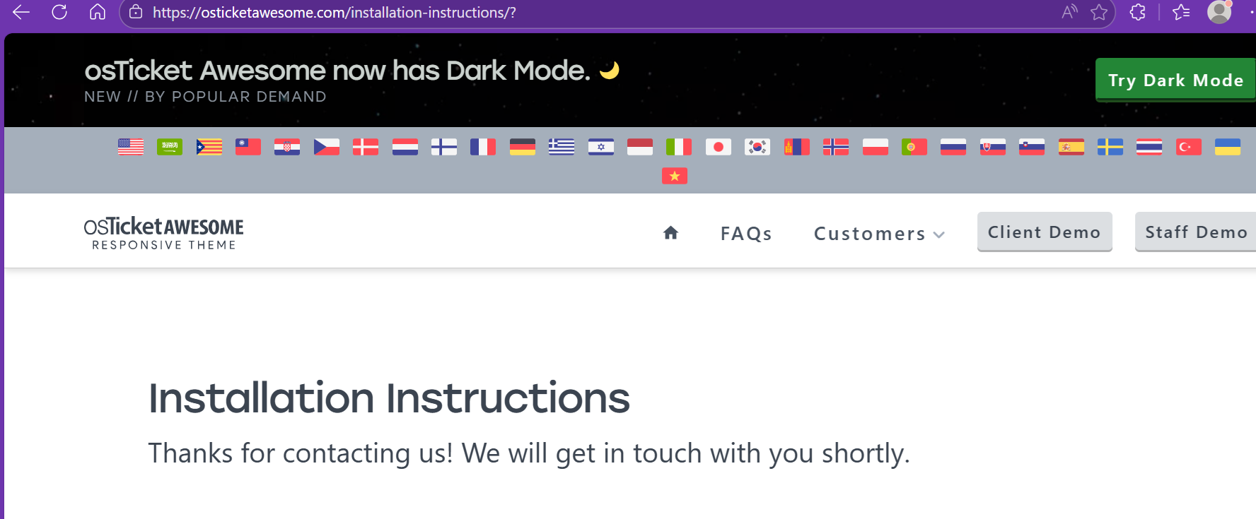 When I try to go this section for viewing instructions (https://osticketawesome.com/installation-instructions/), every option just shows a screen saying that you’ll be in touch, without actually giving the instructions?